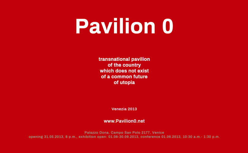 Pavilion 0 został zainicjowany w 2013 roku wystawą w Palazzo Donà na Campo San Polo w Wenecji, we współpracy z Fundacją Signum. Jej kuratorami byli: Tomasz Wendland i Grzegorz Musiał.